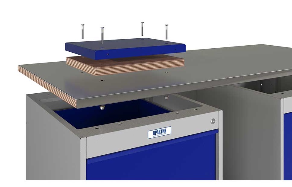Наковальня предназначена для проведения работ, связанных с ударными нагрузками. Изготовлена из фанеры толщиной 30 мм с накладкой из окрашенного металла 3 мм (RAL 5002, шагрень). Массивное основание поглощает отдачу, а накладка из окрашенного металла выдерживает интенсивные нагрузки. Наковальня Практик - отдельный аксессуар, который произвольно монтируется на столешницу верстака.