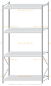 - Легко собираемая и разбираемая конструкция, которая состоит из вертикальных рам (оцинкованные), закрепленных на них горизонтальных балок (окрашенные) и разборных полок (оцинкованные).