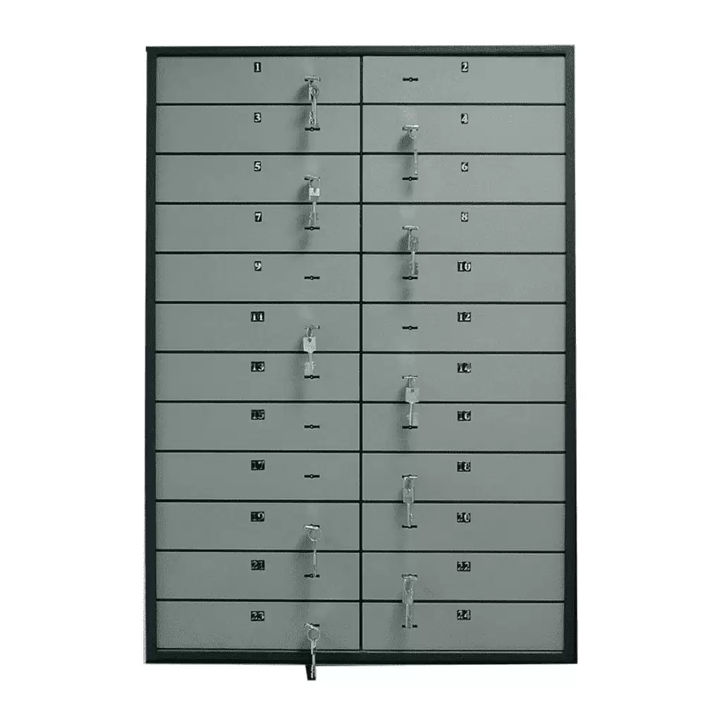 предназначены для оборудования хранилищ в банках и камер хранения в гостиницах толщина лицевой панели ячейки - 3 мм комплектуются двухключевыми замками (банк + клиентский) с одной скважиной KABA MAUER, с перенастраиваемым замком банка порядок нумерации ячеек указывается при размещении заказа возможна комплектация ячеек металлическими кассетами с устройством для опечатывания внешняя отделка дверей ячеек из нержавеющей стали