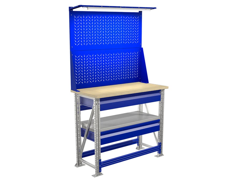 Верстак ПРАКТИК Master M100.MF1.MF1.221 - это легкий и компактный верстак, который используется для различных видов ремонтных или учебных работ внутри помещения.